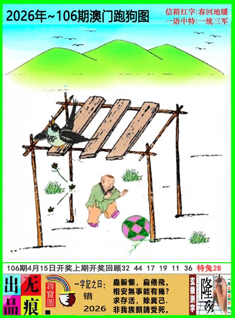 106期: 稳赚六肖 【狗蛇猪兔牛龙】 开 ??